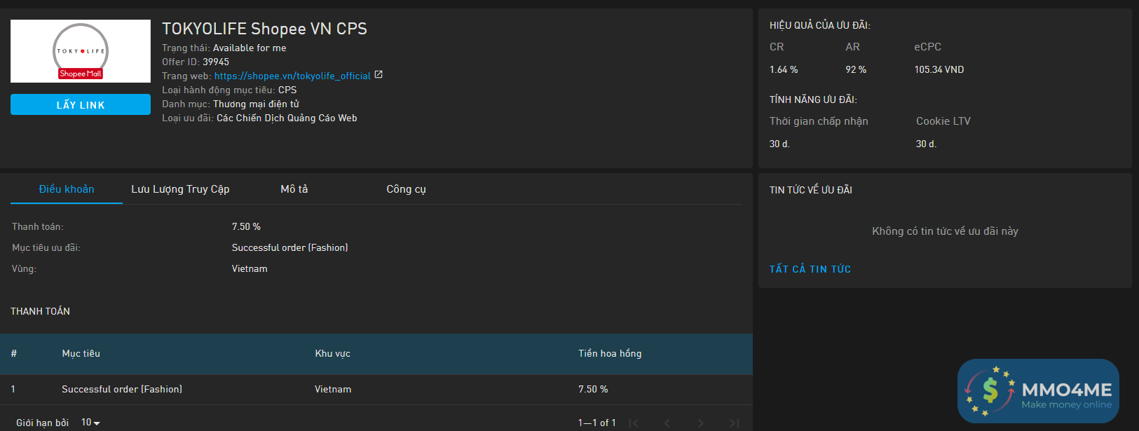 Hoa hồng: 7.5% cho đơn hàng thành công (Thời trang).