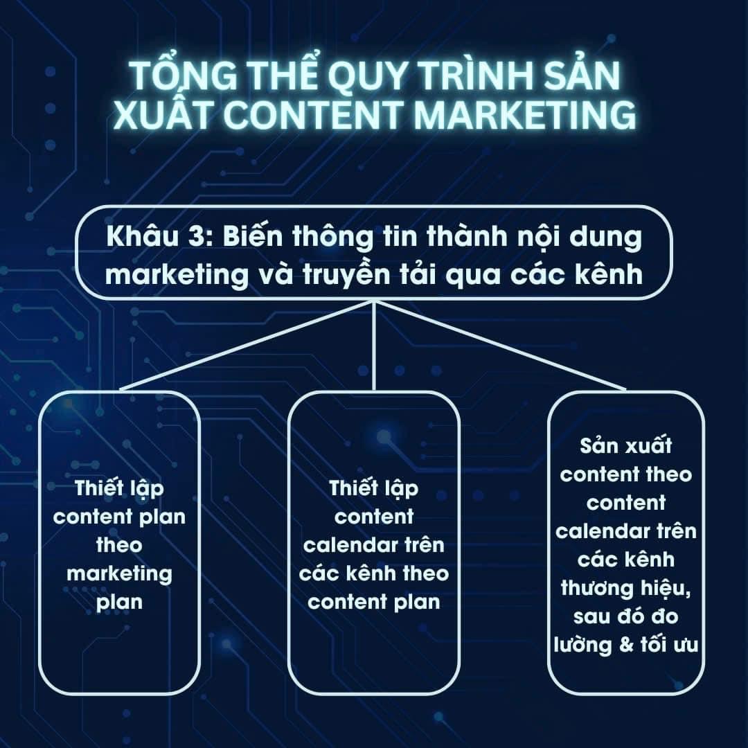 Nếu như 2 khâu phía trên sẽ thiên về Masterplan, tức để hình thành nên tư duy chung của các bộ phận, cũng như định hướng chung để phát triển thành chiến lược/ kế hoạch nội dung. Thì khâu thứ 3 lại thiên về cách triển khai, sản xuất, thực thi.
